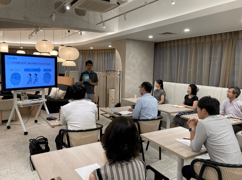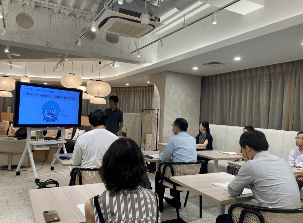 今回は、7月某日にSoloTime新橋にて開催しました、マインドフルネスセミナーの様子をご紹介いたします!お仕事終わりの18時半スタートにもかかわらず、10名ほどの方にご参加いただきました。