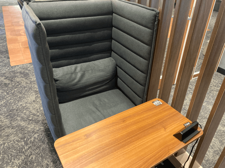 ▼座面はふかふか!&各デスク隅には電源が完備!▼
