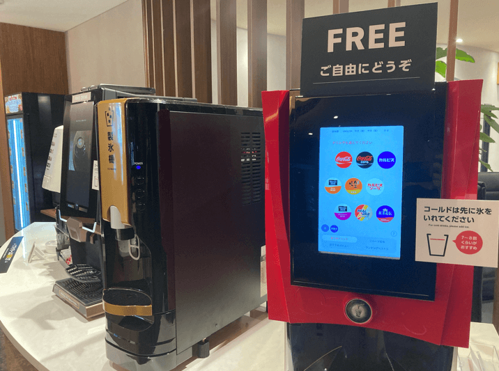 店内にはカップ式の無料自販機のほか、ドリンクバーやスナック菓子も用意されているのが、うれしいポイントです!